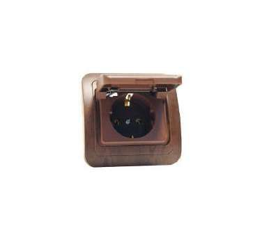 Розетка 1-м СП Mimoza N 16А IP20 с заземл. крышкой ПГ дуб/дуб Makel 24209