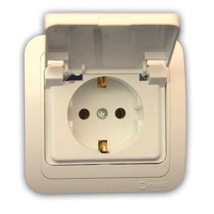 Розетка 1-м СП Mimoza 16А IP20 с крышкой керамика крем./крем. Makel 25009