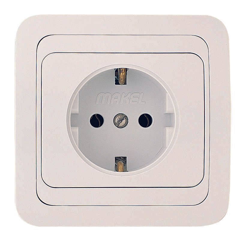 Розетка Makel 12028 устанавливается в стандартный металлический или пластиковый подрозетник глубиной не менее 46 мм. Для монтажа используется винтовое крепление - два фиксирующих винта сбоку механизма. Кабель подключается через винтовые клеммы: фаза (L), ноль (N), земля (PE). Обязательно соблюдать полярность. Убедитесь, что подрозетник имеет внутренний диаметр 68–70 мм - габариты розетки 81×81 мм требуют точного совпадения. После монтажа можно установить декоративную рамку серии Mimoza для завершённого вида.