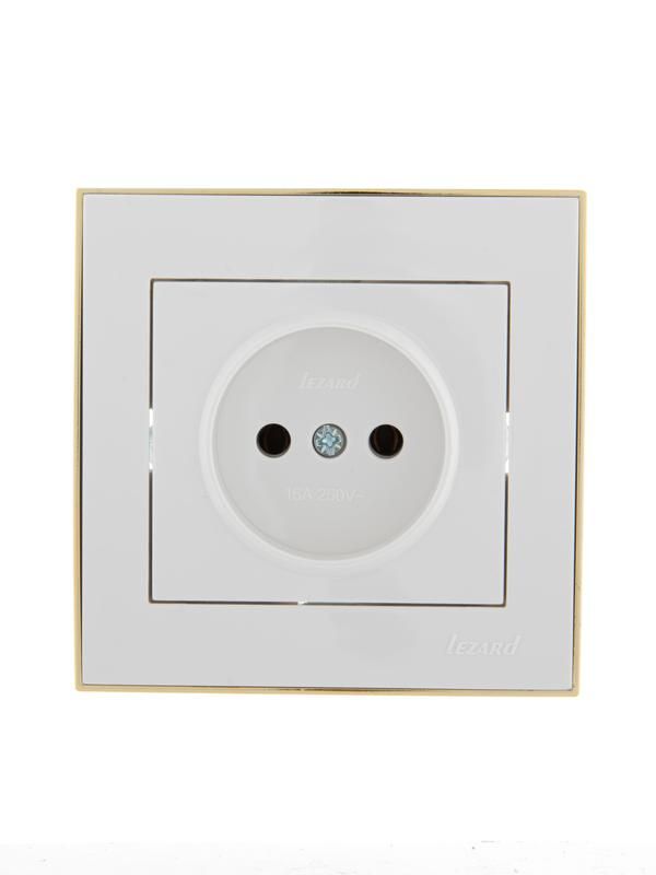 Розетка 1-м СП Rain 16А IP20 без заземл. с зол. боковой вставкой керамика бел. LEZARD 703-0226-121