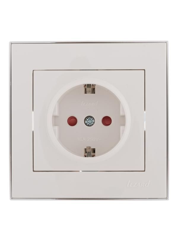 Розетка LEZARD RAIN 703-0225-124 - одногнездовая бытовая розетка на 16 А с керамической основой и защитными шторками, предназначена для надёжного подключения устройств в жилых и офисных помещениях. Белый корпус с хромированной вставкой сочетает функциональность и эстетику.