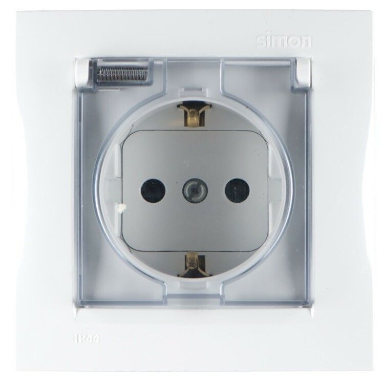 Розетка штепсельная 16А 250В IP44 с заземлением Schuko с защитными шторками, с крышкой, винтовой зажим, белая (артикул 1590450-030, бренд Simon) предназначена для безопасного подключения бытовых и профессиональных устройств в помещениях с повышенной влажностью или риском механического воздействия. Устройство совмещает надёжную защиту, удобство эксплуатации и соответствие требованиям скрытой проводки.