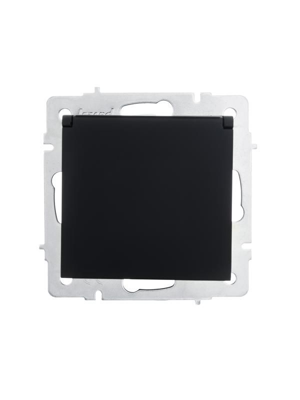 Розетка 1-м СП Vesna с заземл. крышкой ПБТ механизм черн. бархат LEZARD 742-4288-123B