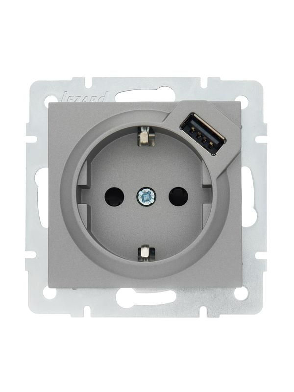 Розетка 1-м СП Vesna с заземл. заряд. устройством USB механизм платина LEZARD 742-3588-181