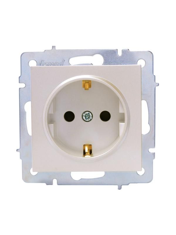 Розетка 1-м СП Vesna с заземл. защ. шторки ПБТ механизм жемчуж./бел. перламутр LEZARD 742-3088-124B