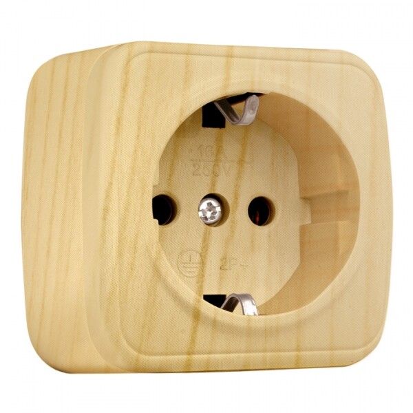 Розетка 1-местная ОП Минск 16А с заземлением светлое дерево EKF | EGR16-028-30