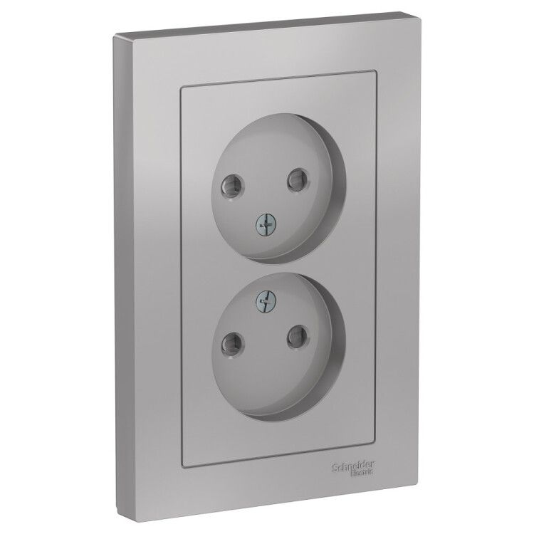 Розетка двойная без заземления со шторками 16А в сборе с рамкой алюминий от Systeme Electric (серии AtlasDesign, артикул atn000322) предназначена для постоянного подключения бытовых приборов в помещениях без требований к заземлению. Комплект с рамкой обеспечивает готовую установку, а шторки повышают безопасность в домах с детьми.