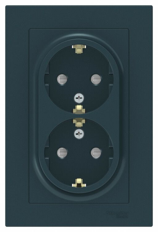 Розетка двойная с заземлением со шторками 16А в сборе цвет изумруд серия SE поставляется уже с рамкой и корпусом - монтировать её проще, чем модульные элементы. Для установки необходима скрытая монтажная коробка глубиной не менее 48 мм. Кабель подключается через винтовые зажимы - максимальное сечение провода - 4 мм2. Нельзя использовать многожильные провода без оконцовки. Работает совместимо с любыми стандартными монтажными коробками для скрытой проводки. Рамка выполнена в том же цвете, что и сам механизм - визуально единая система.