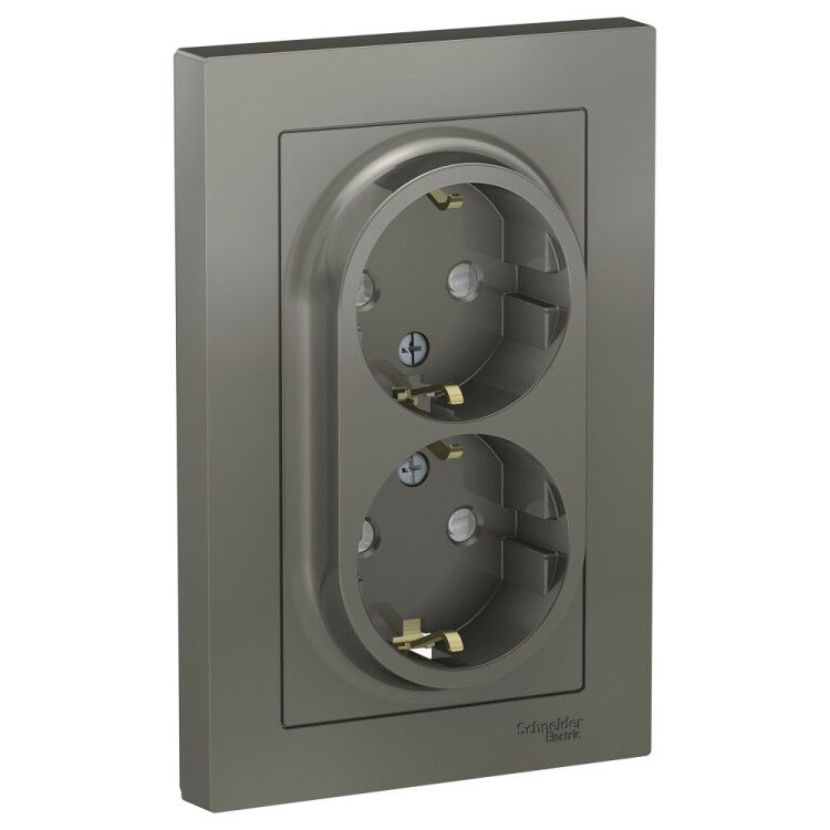 Розетка 2-м СП AtlasDesign 16А IP20 с заземл. защ. шторки в сборе сталь SE ATN000926 APC