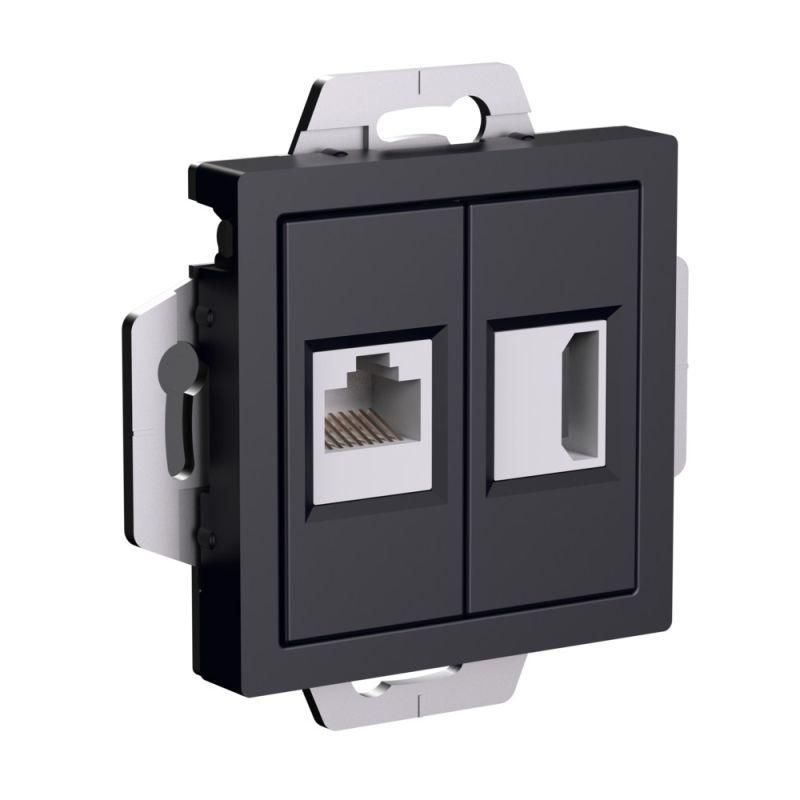 Розетка 2-м AtlasDesign HDMI+RJ45 кат.5E механизм карбон SE ATN001082 APC