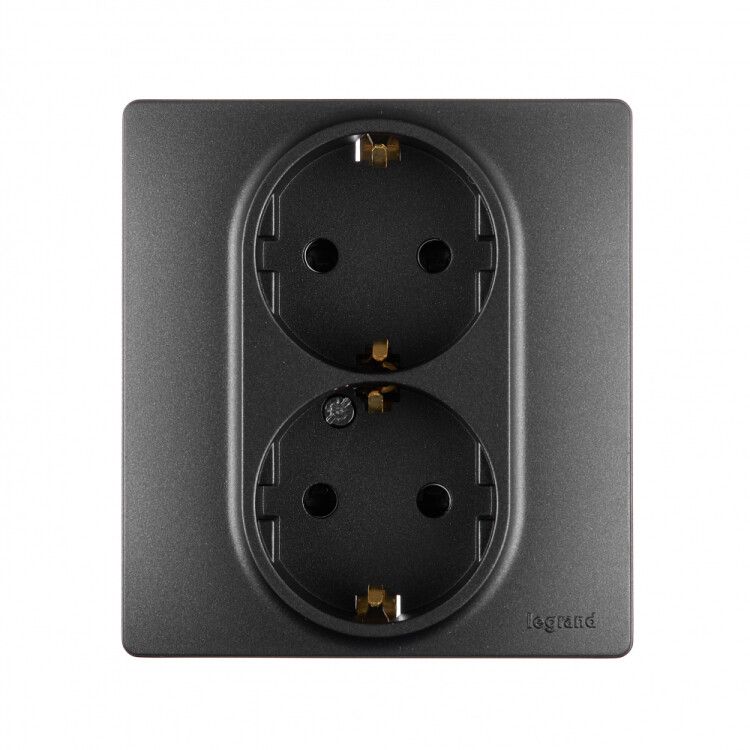 Розетка двойная с заземлением со шторками, автоматические клеммы, 16А, IP31, 250В, антрацит от Legrand и IEK в серии Etika - это компактное решение для безопасного подключения двух устройств в одном месте установки, особенно там, где важна защита от случайного доступа к контактам.