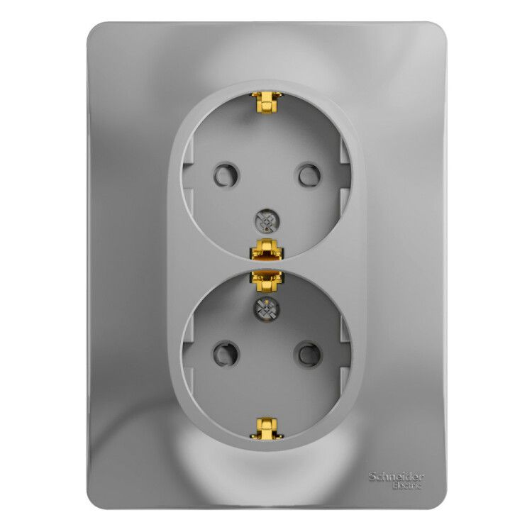 Розетка 2-м СП Glossa 16А IP20 с заземл. защ. шторки в сборе алюм. SE GSL000326 APC