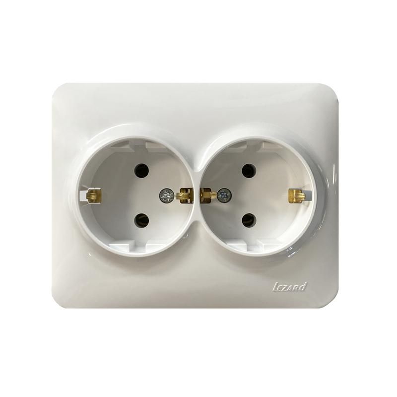 Розетка с заземлением 2-местная белая от бренда LEZARD с артикулом 708-0200-127b предназначена для безопасного подключения двух бытовых устройств с заземляющим контактом. Подходит для установки в жилых помещениях, офисах и на производстве там, где требуется надёжный контакт и защита от поражения током.