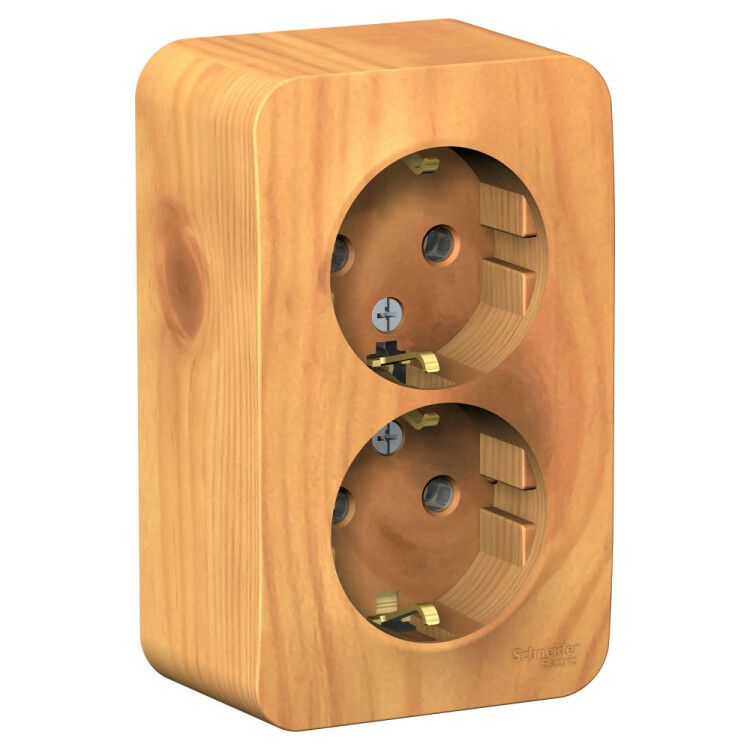 Розетка BLANCA наружная двойная, с заземлением, без шторок, изолирующей пластиной, 16А, 250В, ясень - BLNRA010215 APC
