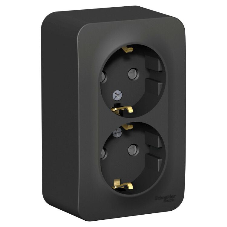Розетка BLANCA наружная двойная, с заземлением, со шторками, изолирующей пластиной, 16А, 250В, антрацит - BLNRA011216 APC