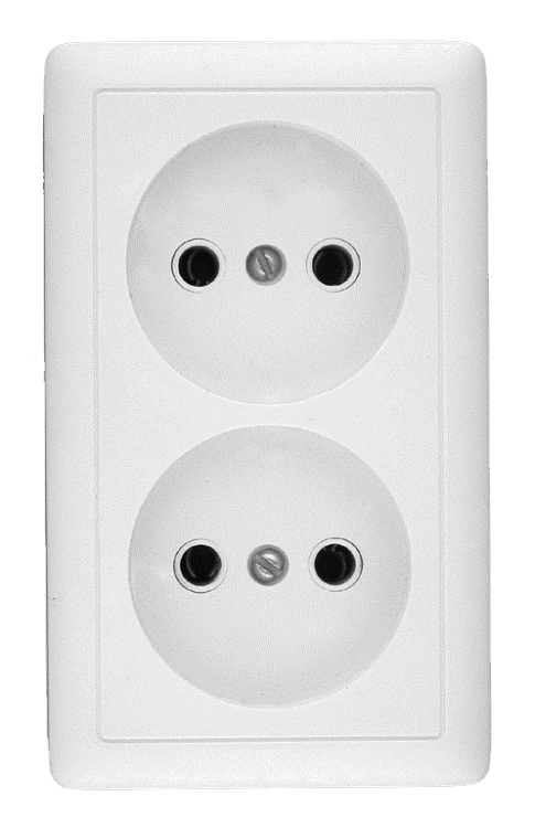 Розетка двойная наружная белая без заземления и шторок 16А 250В соответствует ГОСТ Р 51322.1 и международному стандарту МЭК 60884-1. Отсутствие заземления делает её безопасной только для оборудования класса защиты II - то есть с двойной изоляцией. Нельзя использовать для мощных приборов с металлическим корпусом (стиральные машины, микроволновки, холодильники), так как риск поражения током возрастает. Без шторок - доступ к контактам открыт, что снижает уровень безопасности при наличии детей или влажной среде.