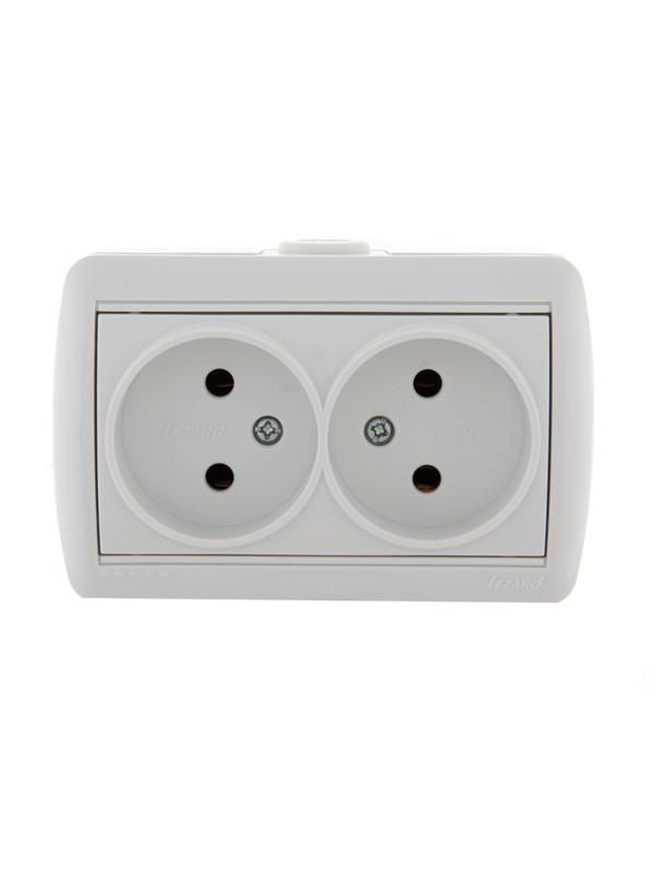 Розетка 2-м ОП Nata 16А IP20 без заземл. керамика бел. LEZARD 710-0200-128