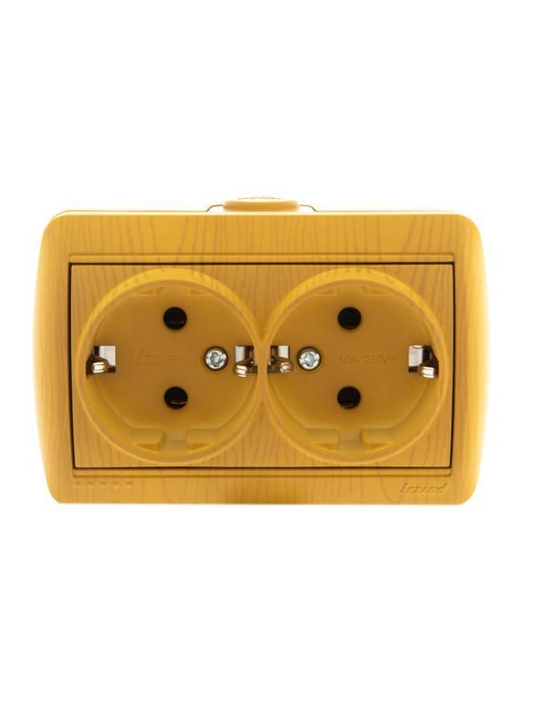 Розетка 2-м ОП Nata 16А IP20 с заземл. керамика ольха LEZARD 710-0700-127