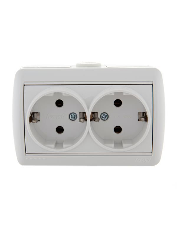 Розетка 2-м ОП Nata 16А IP20 с заземл. керамика бел. LEZARD 710-0200-127