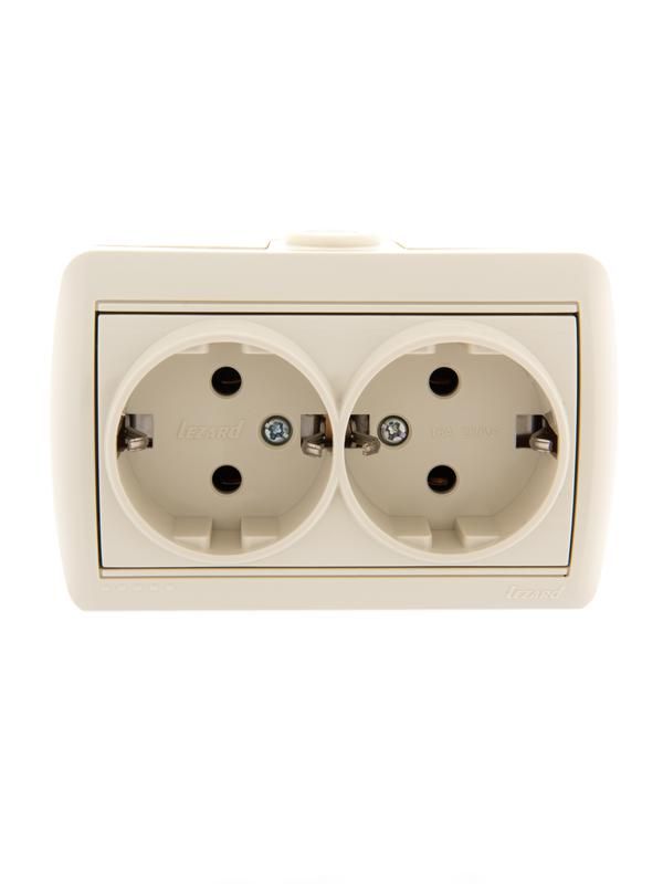 Розетка 2-м ОП Nata 16А IP20 с заземл. керамика крем. LEZARD 710-0300-127