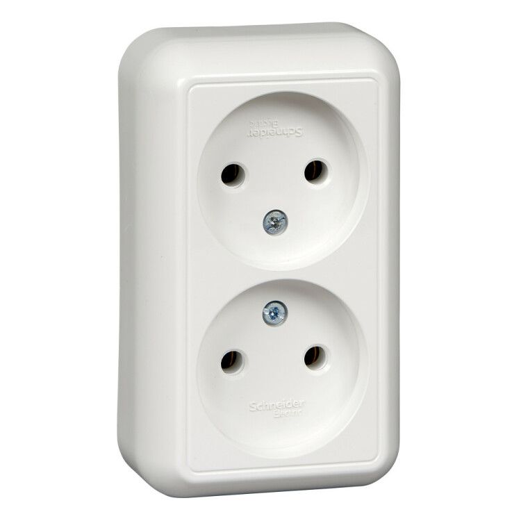 Розетка 2-м ОП Прима 16А IP20 без заземл. защ. шторок монтаж. пласт. (опт. упак.) бел. SchE RA16-213M-B APC