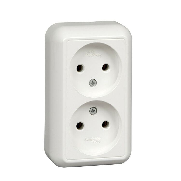Розетка 2-м ОП Прима 16А IP20 без заземл. защ. шторок монтаж. пласт. (розн. упак.) бел. SchE RA16-213M-BI APC