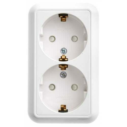 Розетка 2-м ОП Прима 16А 250В защ. шторки с заземл. (опт. упак.) бел. SchE RA16-214-B APC