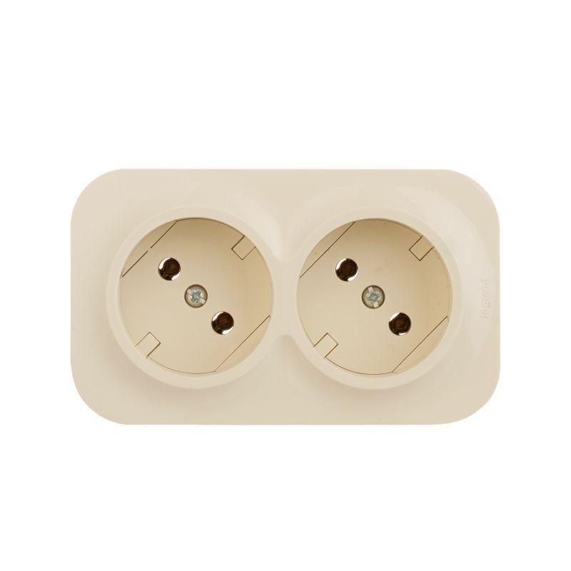 Розетка силовая двойная без заземления без защитных шторок 16 А 250 В IP20 слоновая кость от Legrand (серии Quteo, артикул 782261) предназначена для подключения бытовых и офисных устройств в сетях без заземляющего контура. Устройство выполнено в модульном исполнении, совместимо с французским стандартом NF и рассчитано на открытую установку.