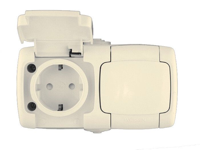 Розетка 2-м ОП Рондо защ. шторки с заземл. IP44 сл. кость SchE RA16-227B-SI (РА16-227Б-си) APC