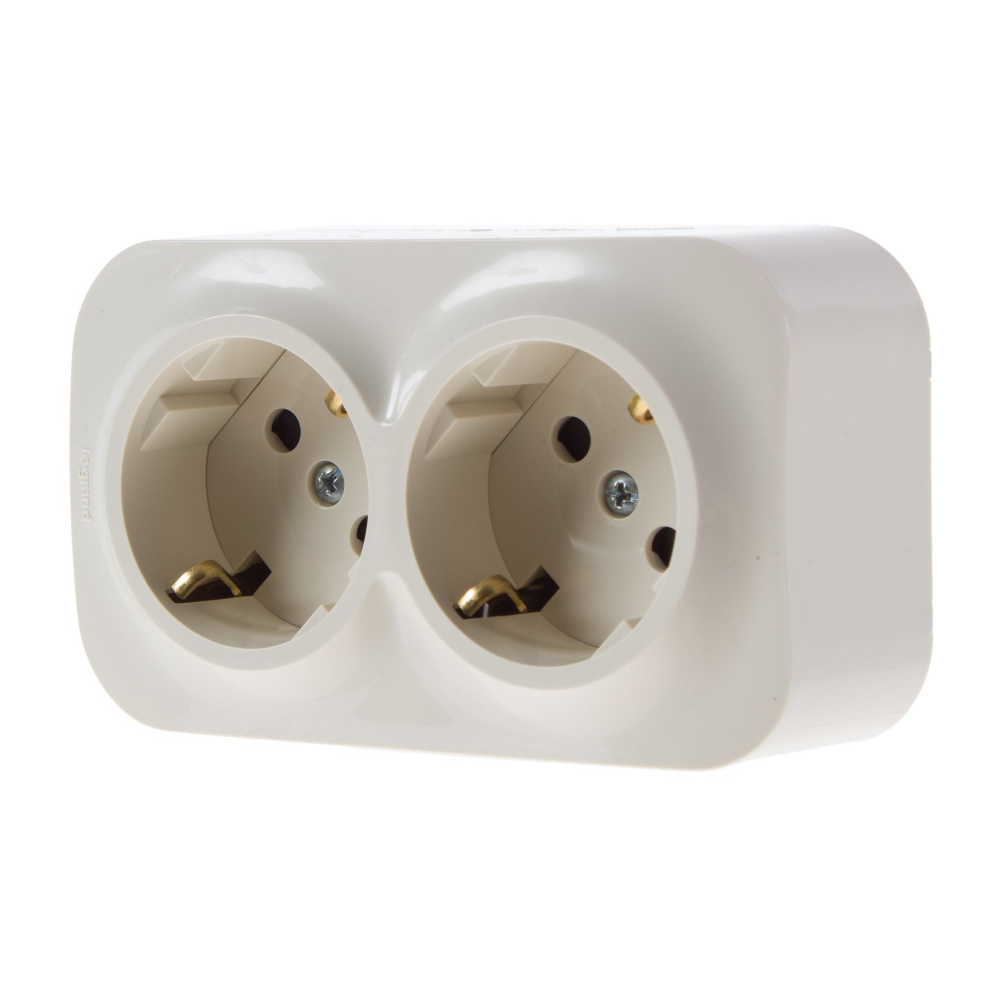 Розетка 2-м ОП Quteo 16А IP20 250В 2х2P+E с заземл. защ. шторки сл. кость Leg 782253 Legrand
