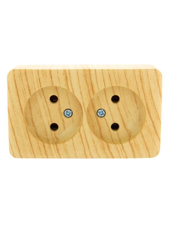 Розетка двойная без заземления керамика белёный дуб 16А IP20 совместима со стандартными подрозетниками для открытой установки. Для монтажа требуется предварительно подготовить место на стене, закрепить устройство винтами через отверстия в корпусе. Кабель сечением до 2,5 мм2 заводится в зажимные лапки - не требует обжима или пайки. Обязательно отключите питание перед работой. Нельзя использовать с кабелями большего сечения - это повредит контактную группу.
