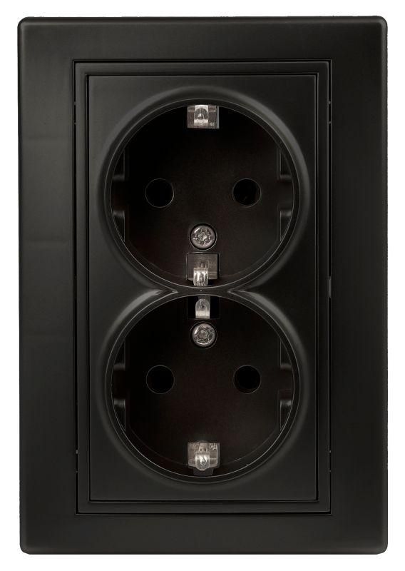 Розетка однофазная двойная скрытого монтажа, в рамку с заземлением без шторок антрацит 16А 250В IP20 1-205-05 Intro Plano - Б0053919 ЭРА Б0044570