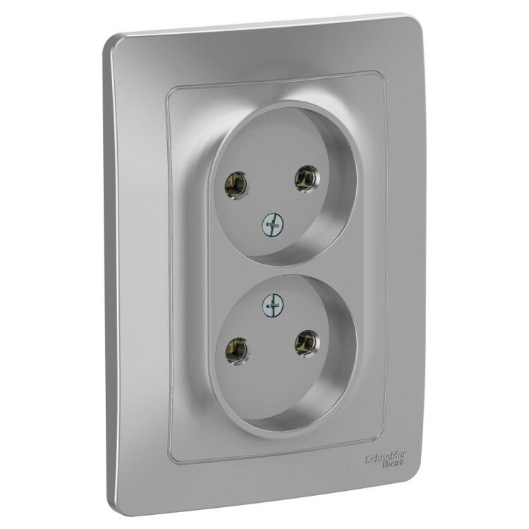 Розетка скрытой установки двойная без заземления без защитных шторок, 16А, 250В, алюминий от Systeme Electric (артикул blnrs000023, серия BLANCA) - простое решение для подключения бытовых устройств в помещениях с постоянным контролем доступа, где не требуется заземление. Подходит для внутренней проводки в жилых и административных зданиях.