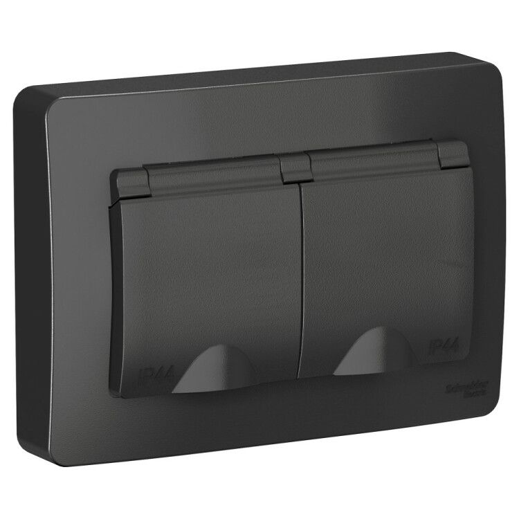 Розетка 2-м СП Blanca 16А IP44 250В с заземл. защ. шторки крышкой антрацит SE BLNRS441126 APC