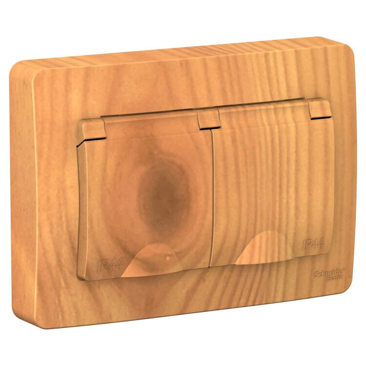 Розетка BLANCA скрытой установки IP44 двойная, с заземлением, со шторками, 16А, 250В, ясень - BLNRS441125 APC