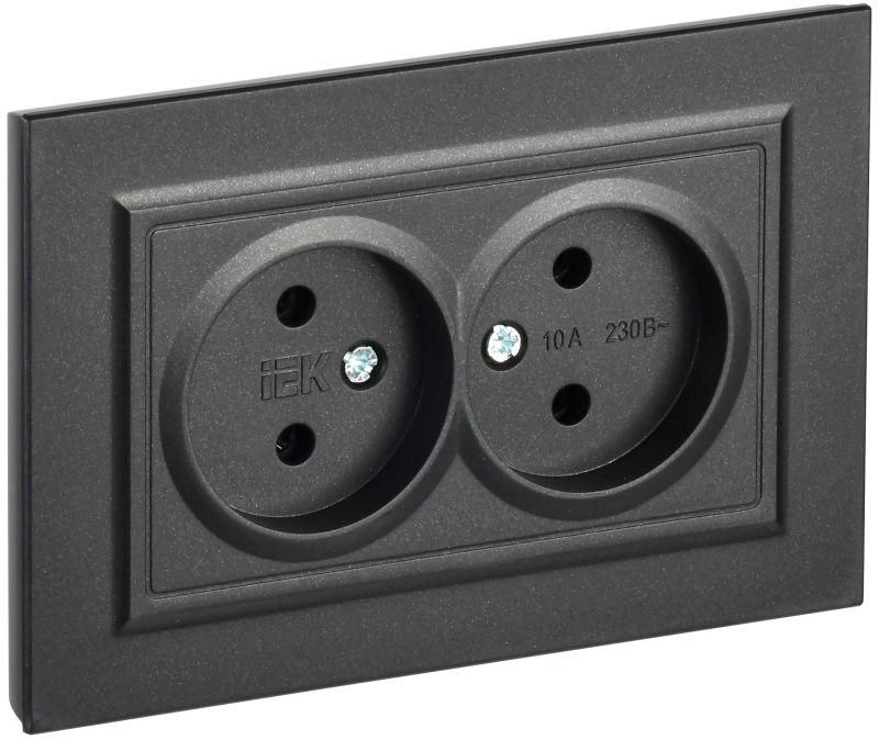 Розетка 2-м СП BRITE РС12-2-БрЧ 10А в сборе без заземл. защ. шторок черн. IEK BR-R20-10-K02-F