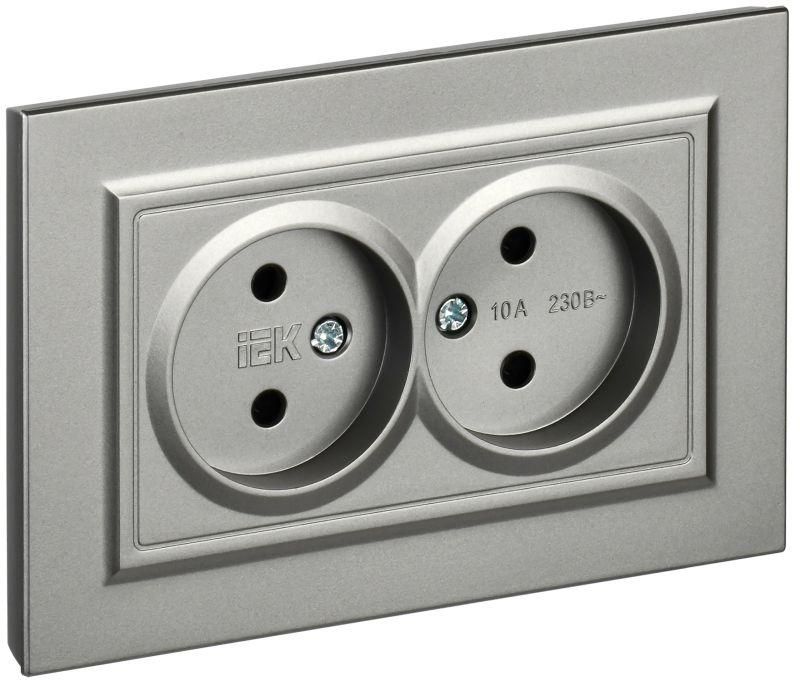 - Розетка РС12-2-БрС сталь от IEK хорошо сочетается с выключателями серии BRITE - создаёт единый визуальный ряд