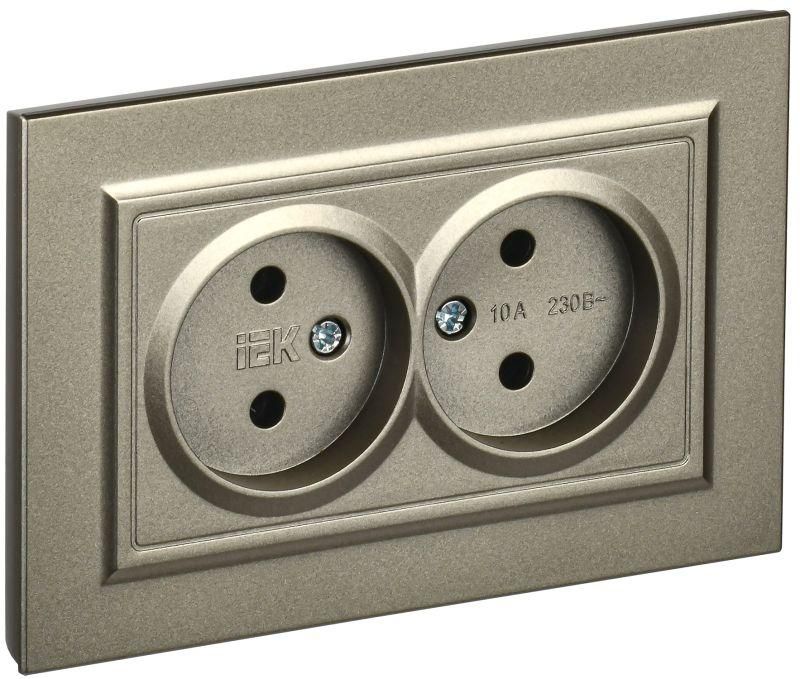 - Розетка РС12-2-БрШ от IEK - экономичный вариант, но не замена качественной заземленной розетке там, где это требуется по правилам безопасности.