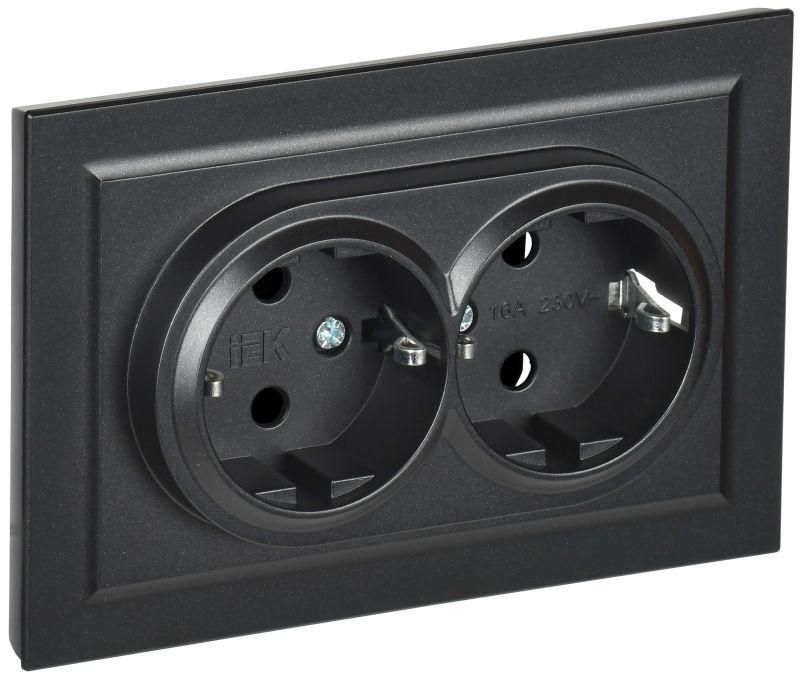 Розетка 2-м СП BRITE РС12-3-БрЧ 16А в сборе с заземл. без защ. шторок черн. IEK BR-R21-16-K02-F