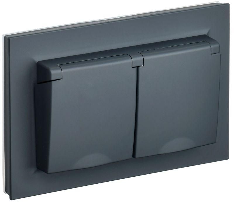 Розетка 2-м СП BRITE РСбш12-3-44-БрГ 16А IP44 в сборе с заземл. защ. шторки крышкой графит IEK BR-R26-16-44-K53-F