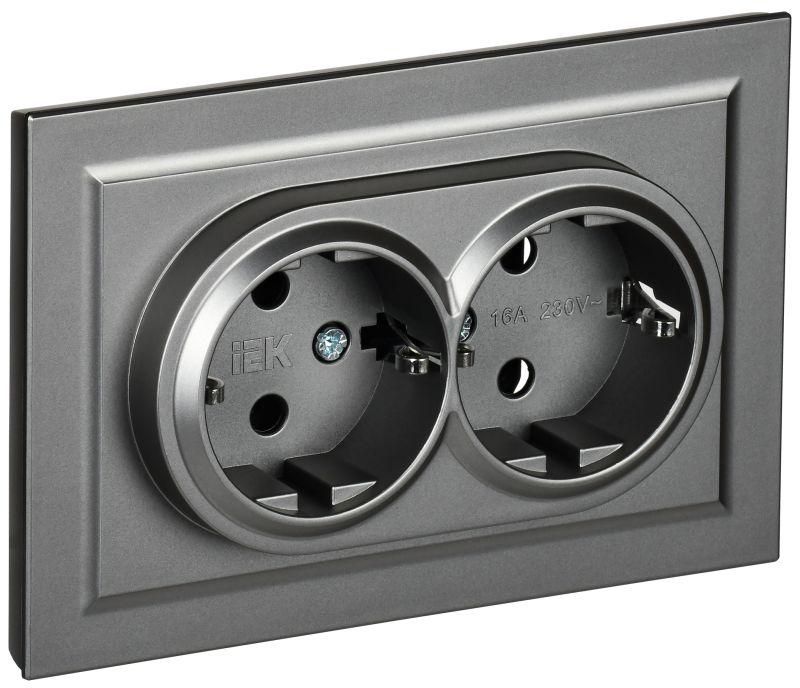 Розетка 2-м СП BRITE РСш12-3-БрС 16А в сборе с заземл. защ. шторки сталь IEK BR-R24-16-K46-F