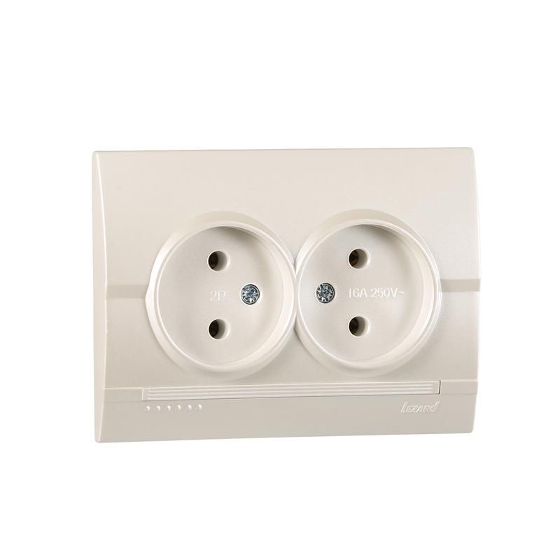 Розетка 2-местная без заземления 16А IP20 керамика жемчужно-белый от бренда Lezard, артикул 702-3030-128 из серии DERIY - это надёжное двухпозиционное устройство для подключения бытовых приборов в помещениях с невысокой влажностью, где не требуется защита от утечки тока через корпус.