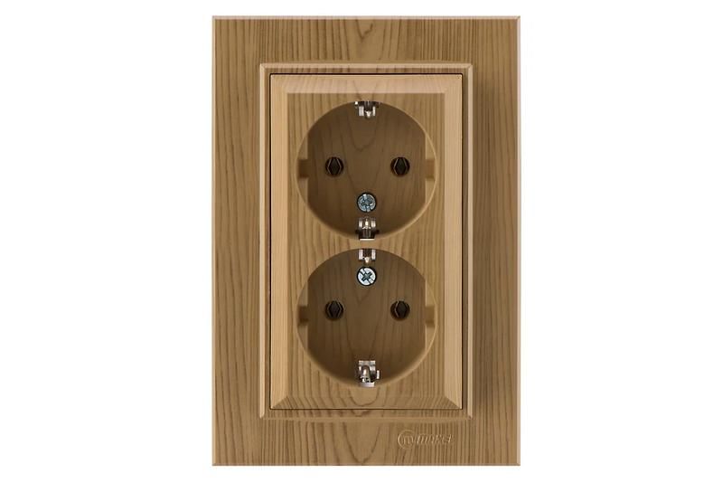 Розетка Makel Karea 56101082 - двухместная силовая розетка на 16 А с заземлением и декоративным покрытием под дуб. Подходит для подключения мощного оборудования в помещениях с нормальной влажностью, например, на производстве, в мастерских или домашних гаражах.