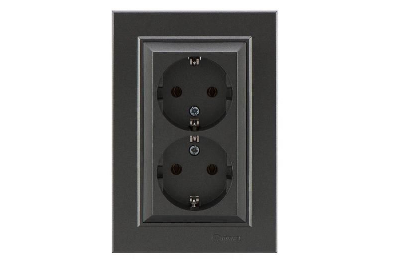 Розетка 2-м СП Karea 16А IP20 с/з дым. металлик Makel 56050082