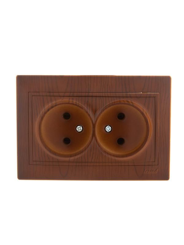 Розетка двойная без заземления 16А IP20 керамика сосна от бренда Lezard, артикул 701-0801-128 из серии MIRA - это компактное устройство для подключения бытовых приборов в помещениях с невысокой влажностью, где не требуется защита от утечки тока через корпус. Материал корпуса - поликарбонат с имитацией дерева, что делает её подходящей для интерьеров в стиле «деревенский» или «сканди».