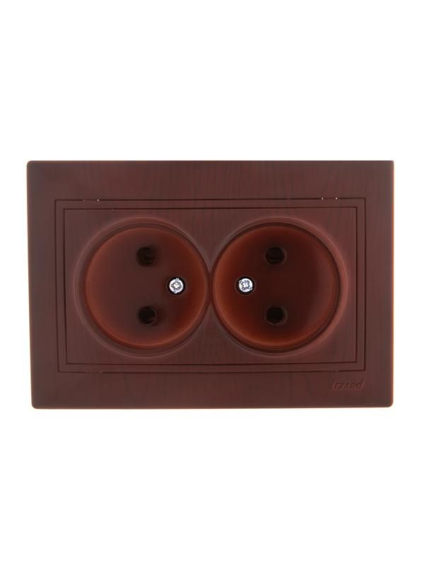 Розетка двойная без заземления керамика вишня 16А IP20 от бренда Lezard, артикул 701-0601-128, предназначена для подключения бытовых приборов в помещениях с умеренным климатом. Модель выполнена в стиле «моноблок» с декоративной поверхностью, имитирующей дерево, и рассчитана на работу в сетях до 220 В и током до 16 А.
