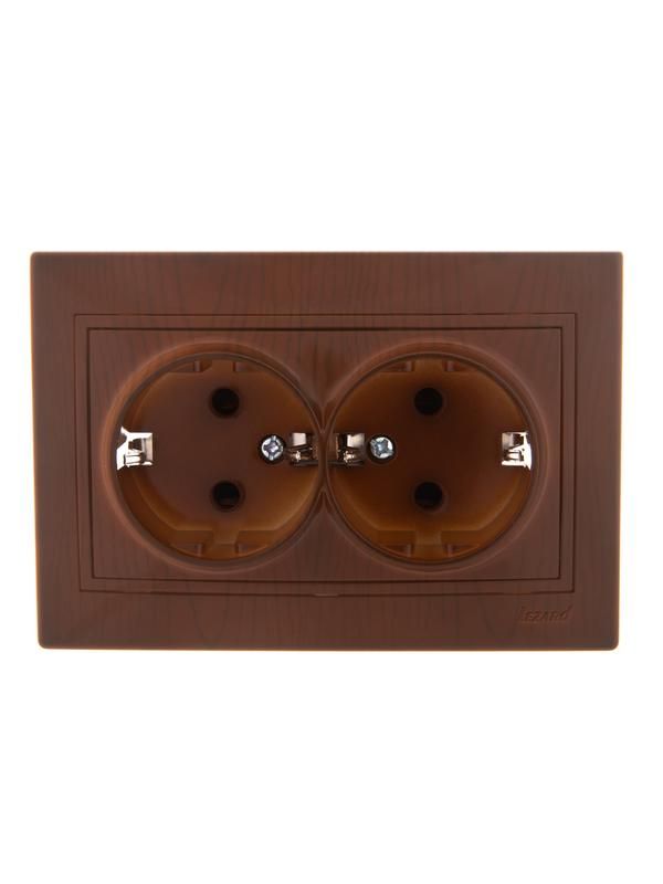 Розетка двойная с заземлением сосна 16А IP20 от Lezard (артикул 701-0801-127) - это надёжная скрытая розетка для постоянного подключения бытовых и профессиональных устройств в помещениях с нормальной влажностью. Материал корпуса - поликарбонат, цвет имитирует натуральное дерево, что делает её подходящей для интерьеров в стиле «натуральный». Эта модель из серии MIRA рассчитана на нагрузку до 16 А и соответствует ГОСТ Р 51321.1-2007.