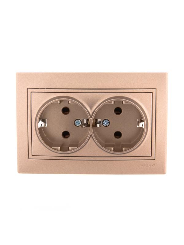 Розетка двойная с заземлением керамика светло-коричневая перламутровая 16А IP20 совместима с любыми подрозетниками стандарта 68×68 мм. Монтаж выполняется через винтовое крепление к планкам внутри подрозетника. Для подключения используйте кабель сечением не более 2,5 мм2 - большие сечения не войдут в клеммы. Каждый контакт зажимается отдельно: фаза, ноль, заземление. Перед монтажом обязательно отключите питание. После установки проверьте плотность затяжки винтов - слабый контакт вызывает нагрев.