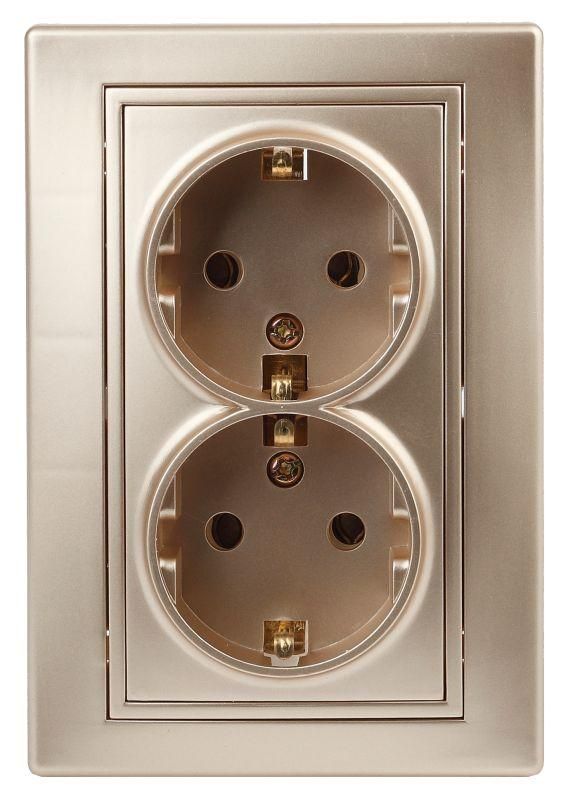 Розетка 2-м СП Plano 1-205-04 16А IP20 250В 2х2P+E Schuko шампань Intro Б0030071 ЭРА