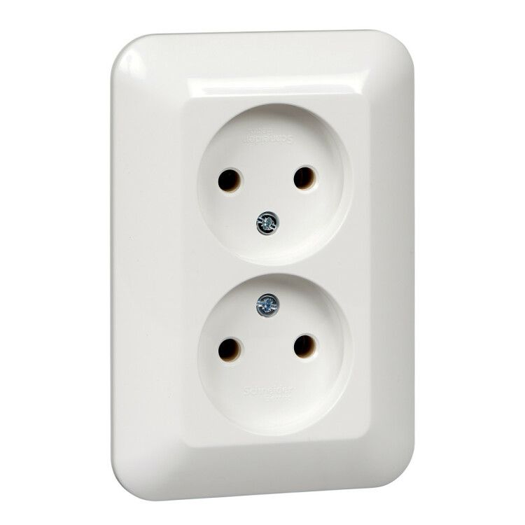 Розетка 2-м СП Прима 16А IP20 без заземл. защ. шторок (розн. упак.) бел. SchE RS16-211-BI APC